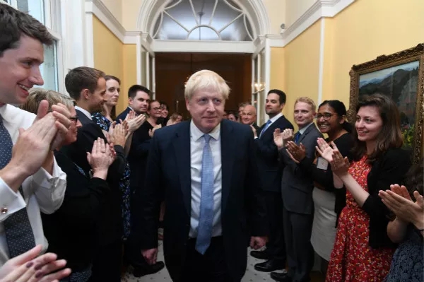 图说:当地时间2019年7月24日,英国伦敦,新一任首相鲍里斯-约翰逊独自走进唐宁街10号,受到工作人员的热烈欢迎。IC图 (文章来源:新民晚报)英国当地时间7月23日,保...