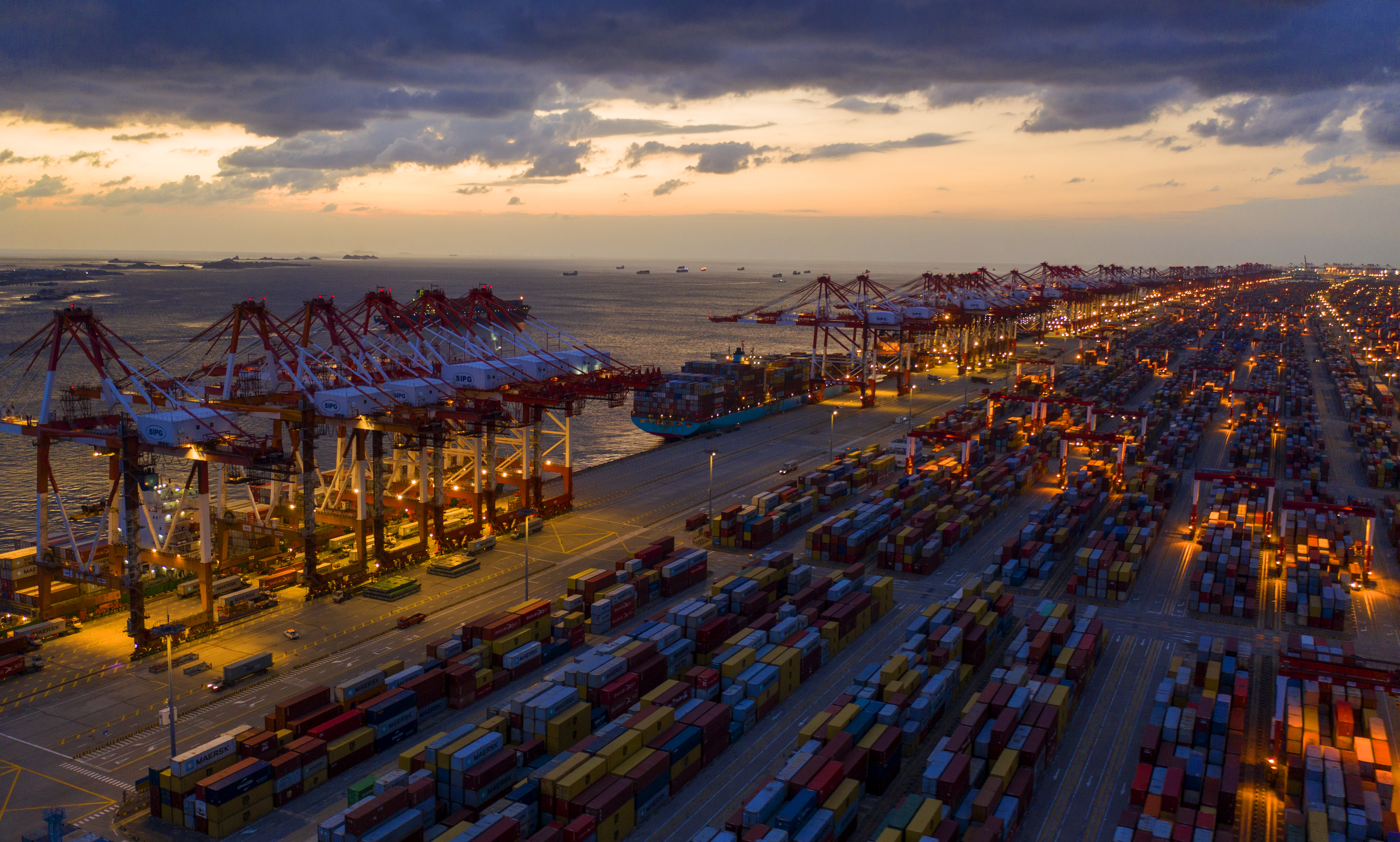 ▲入世二十年,中国已成长为世界贸易中最大的国别出口者和第二大国别进口者。图为2021年10月23日,上海洋山深水港,作业繁忙的集装箱码头。文:沈国兵 | 图:视觉中国...